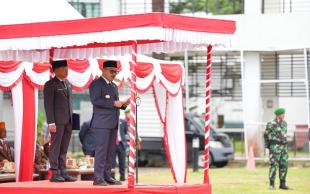 MAMUJU--Gubernur Sulawesi Barat, Suhardi Duka bertindak sebagai pembina upacara ...